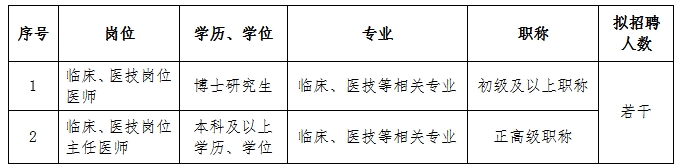 (二)臨床、醫(yī)技、護理等崗位人才(緊缺急需專業(yè):重癥醫(yī)學科、全科醫(yī)學科、康復醫(yī)學科、感染性疾病科、急診科、兒科、麻醉科、眼科、皮膚科、病理科、心腦電生理科等科室醫(yī)師)