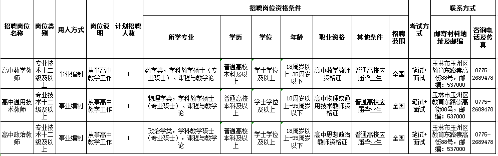具體招聘信息請瀏覽玉林市人社局網(wǎng)站相關(guān)公告,以《2024年秋季期玉林市教育局直屬學(xué)校赴廣西師范大學(xué)公開招聘教師公告》為準。