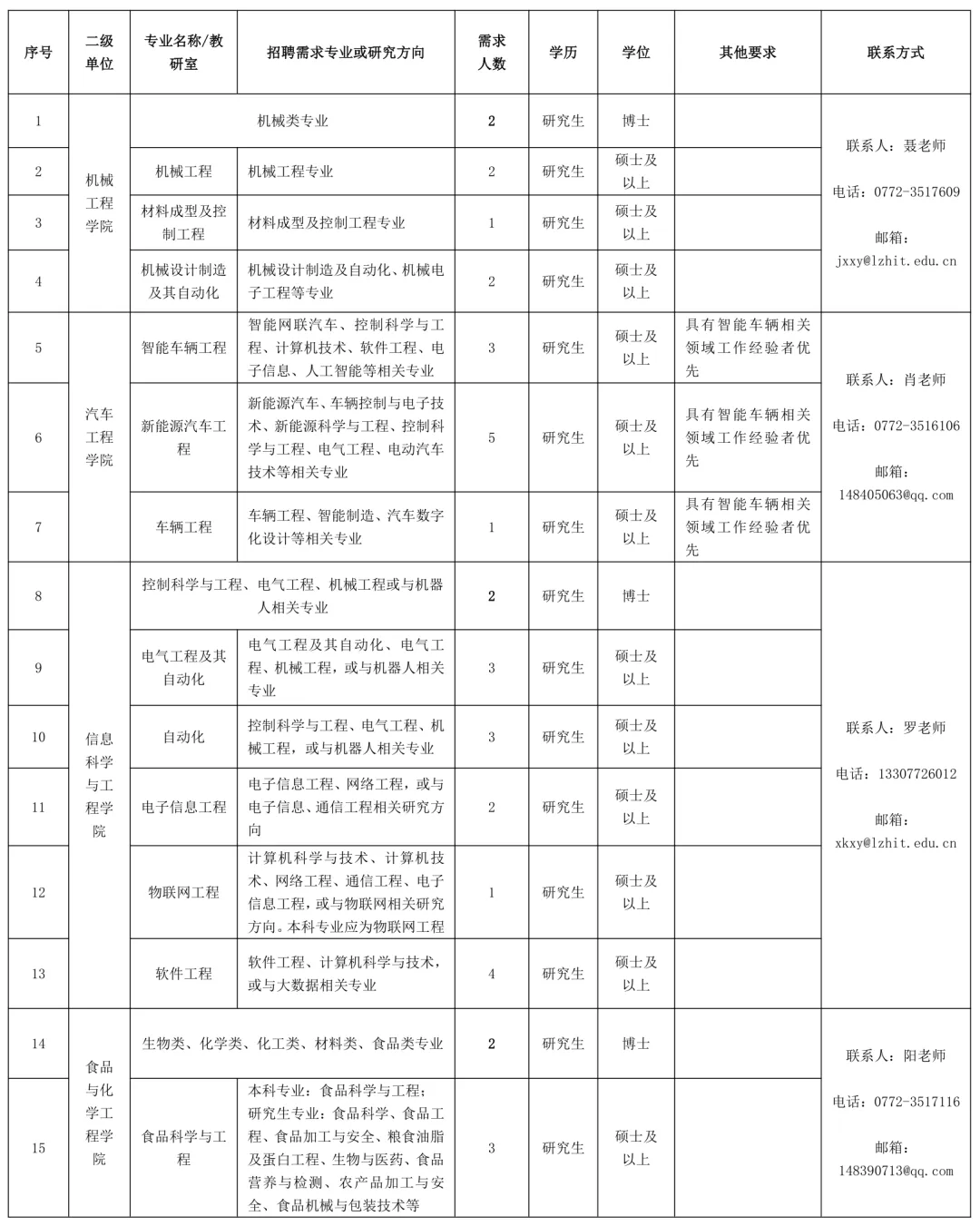 聯(lián)系地址:廣西柳州市魚峰區(qū)新柳大道99號柳州工學(xué)院人事處(科教樓1409辦公室)