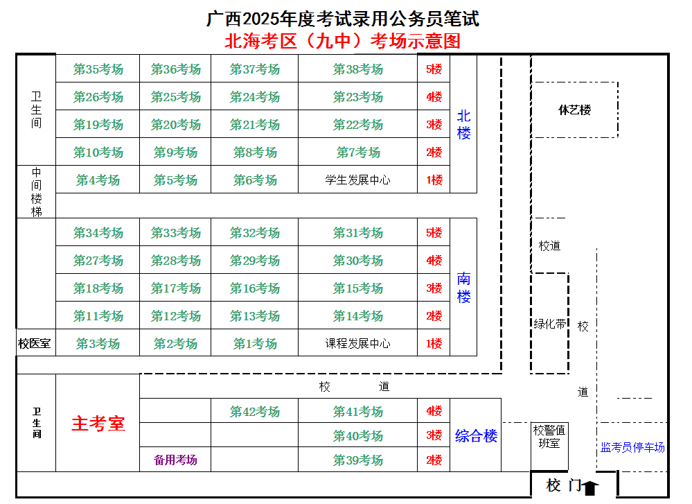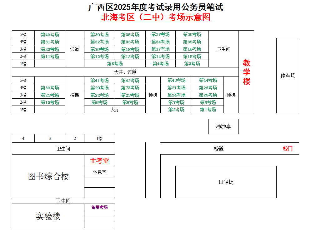 北海考區(qū)共設(shè)置5個(gè)考點(diǎn),具體考點(diǎn)考場(chǎng)布置分別如下:
