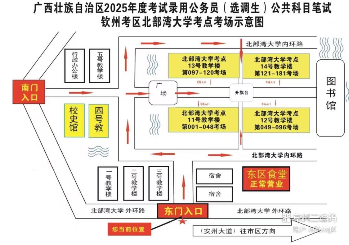 欽州考區(qū)共設(shè)兩個考點,分別為北部灣大學考點、北部灣職業(yè)技術(shù)學??键c。(考點地址和具體考場安排請掃附后的二維碼查看)