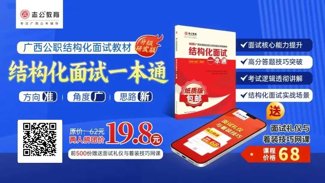 廣西結(jié)構(gòu)化面試一般3-4題,15-20分鐘,重點考察: