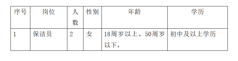 因工作需要,平果市馬頭鎮(zhèn)衛(wèi)生院面向物業(yè)服務公司公開招聘保潔人員2名,現(xiàn)將有關事項公告如下: