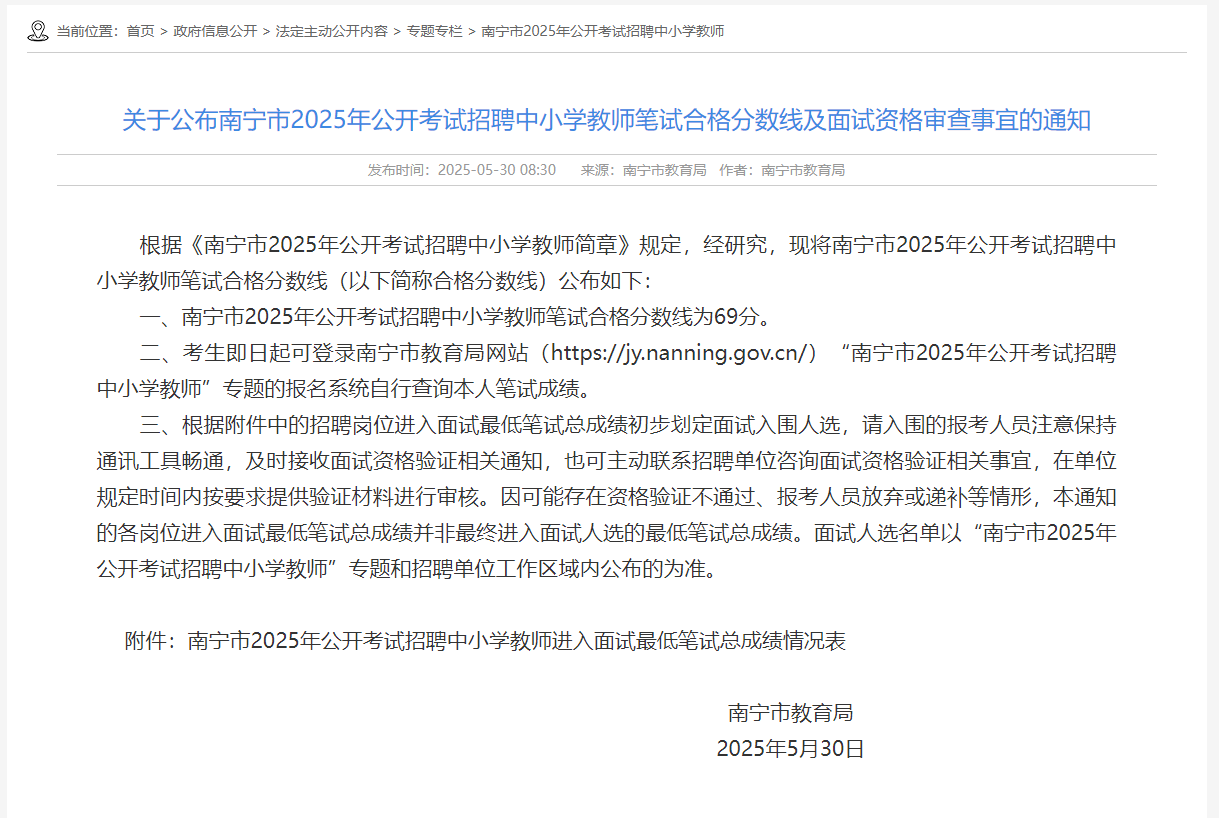 南寧市2025年教師招聘
