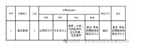 2.報(bào)名地點(diǎn):來賓市興賓區(qū)五山鎮(zhèn)衛(wèi)生院辦公室。