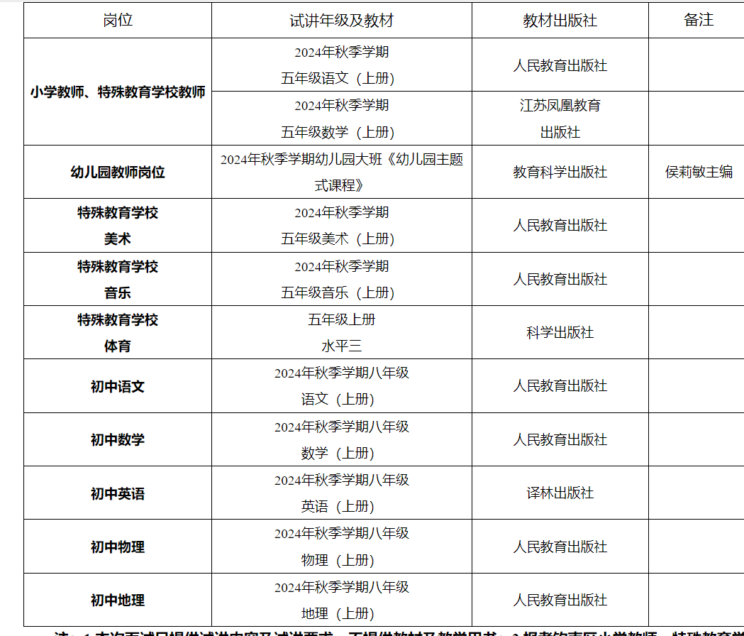 注:1.本次面試只提供試講內(nèi)容及試講要求,不提供教材及教學(xué)用書(shū);2.報(bào)考?xì)J南區(qū)小學(xué)教師、特殊教育學(xué)校教師崗位的考生可自由選擇語(yǔ)文或數(shù)學(xué)進(jìn)行試講。