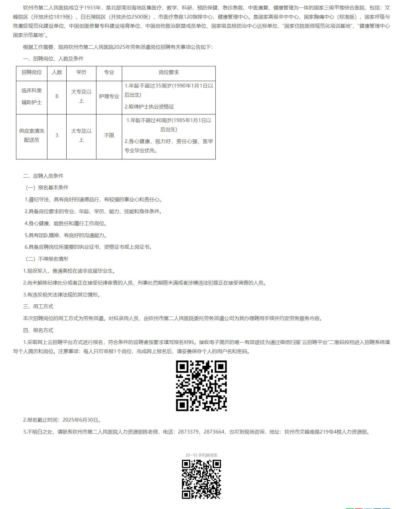 2025年欽州市第二人民醫(yī)院勞務(wù)派遣崗位人員招聘公告