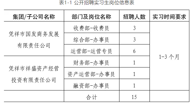 本次共計(jì)劃招聘憑祥市國(guó)際貿(mào)易開(kāi)發(fā)集團(tuán)有限公司下屬企業(yè)實(shí)習(xí)生崗位15人。具體要求詳見(jiàn)《附件1:憑祥市國(guó)際貿(mào)易開(kāi)發(fā)集團(tuán)有限公司2025年公開(kāi)招聘暑期實(shí)習(xí)生崗位信息表》
