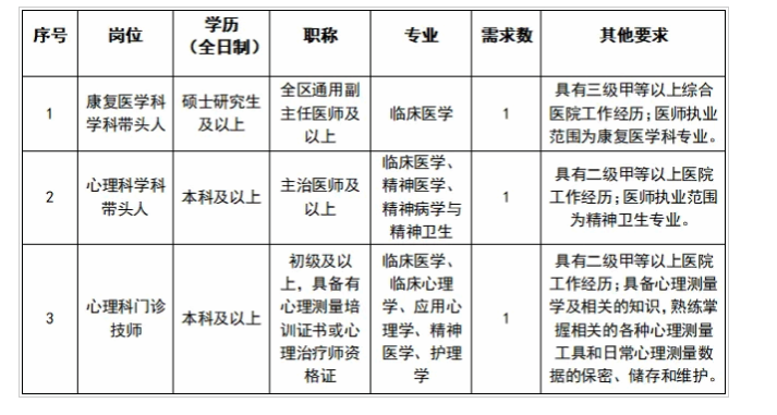 6.初級(jí)職稱要求30周歲以下、中級(jí)職稱要求35周歲以下、全區(qū)通用副高級(jí)職稱要求40周歲以下,特別優(yōu)秀者可酌情放寬。