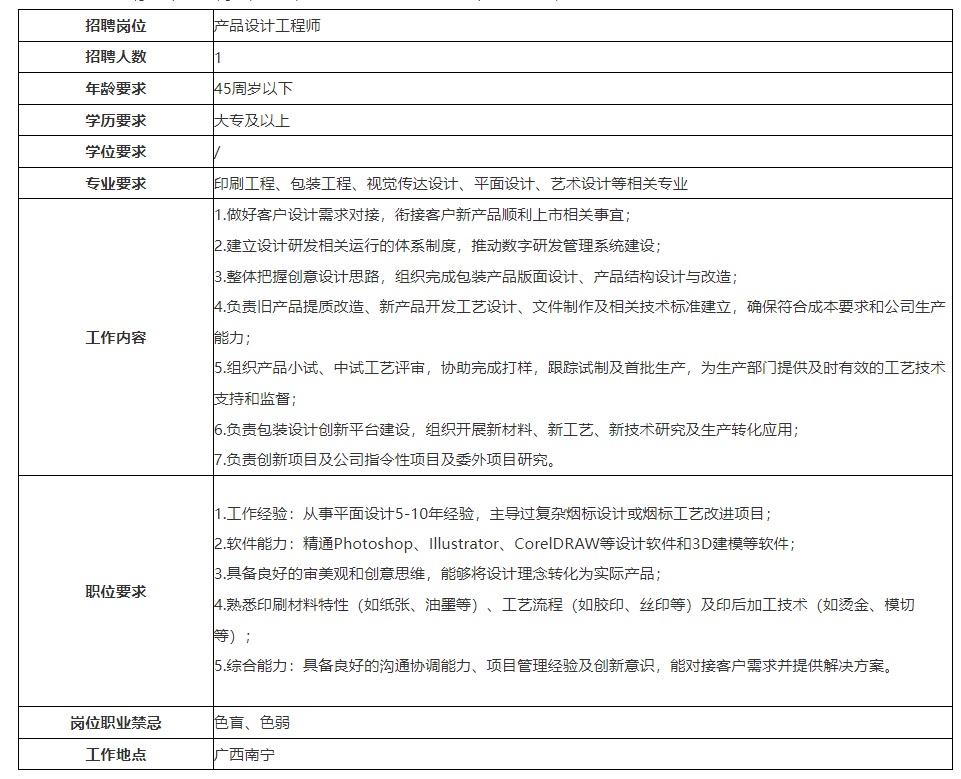 公司以創(chuàng)新引領(lǐng)發(fā)展,公司先后獲得“全國印刷示范企業(yè)”、“中國煙標(biāo)印刷行業(yè)最具實力十大領(lǐng)軍企業(yè)”、“廣西制造業(yè)企業(yè)50強”,連續(xù)三年獲得“廣西優(yōu)秀企業(yè)”、“賀州市億元納稅企業(yè)”等榮譽稱號。公司秉承以人為本的理念,尊重人才、重視人才,開展員工職業(yè)發(fā)展規(guī)劃,為每一位員工提供廣闊的發(fā)展機(jī)會,充分發(fā)揮員工自主性和創(chuàng)造性。根據(jù)公司發(fā)展需要,現(xiàn)面向社會公開招聘員工。具體事項公告如下: