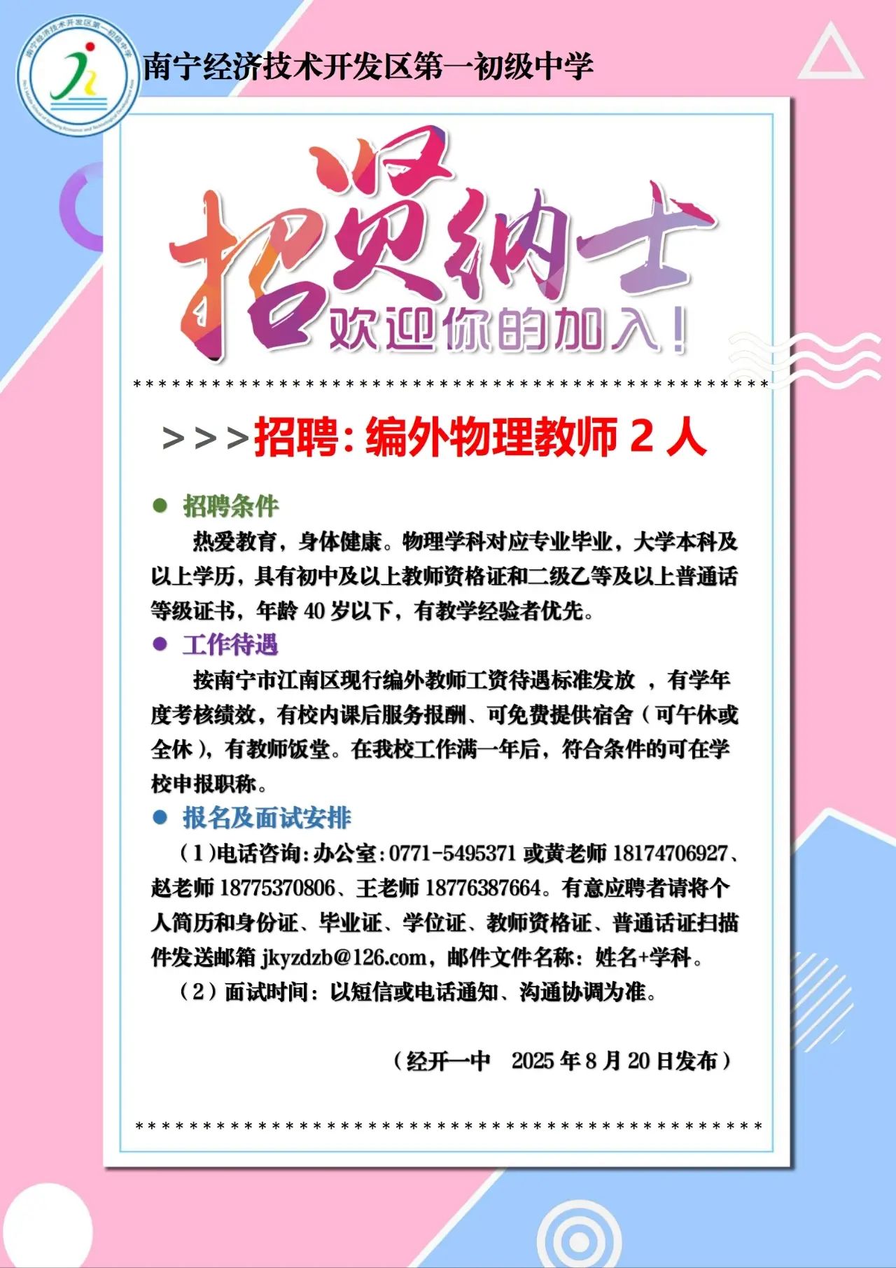 2025年南寧經(jīng)濟技術(shù)開發(fā)區(qū)第一初級中學招聘物理教師