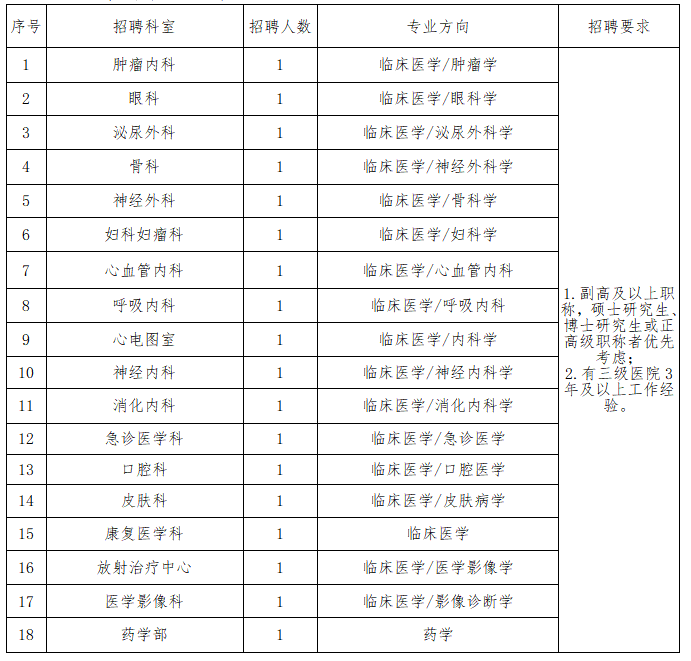 1.依據國家和學校相關規(guī)定享受相應的待遇和工作條件,符合醫(yī)院人才引進政策的享受相應等次(博士、學科帶頭人、業(yè)務骨干、碩士研究生、急需崗位本科畢業(yè)生)的待遇,含安家費、科研啟動費、租房補貼等,具體情況以人事科解釋為準。